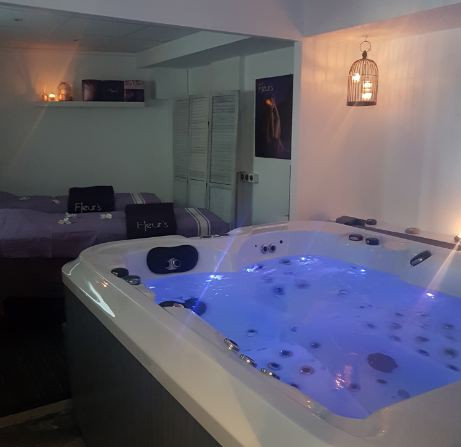 Afin de vous proposer le plus savoureux des moments, un SPA Jacuzzi se situe dans la cabine de massage en duo ... pas besoin de sortir de la pièce ou d'enfiler un peignoire ... vous n'aurez qu'à plonger dans le jacuzzi à 37°C et profiter de ses jets de massages puissants, des huiles essentielles et de votre thé ou café.