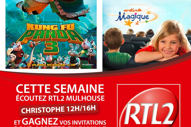 Pour jouer et gagner vos places pour l'avant-première de "KUNG-FU PANDA 3", écoutez Christophe Sandevoir entre 12h00 et 16h00 sur RTL2 Mulhouse (91.2.)