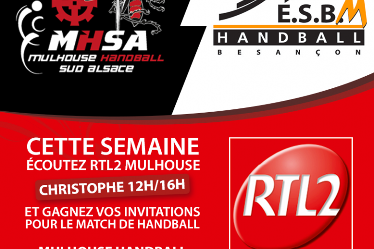 RTL2 Mulhouse vous offre cette semaine vos places pour la rencontre de Hand-Ball du MHSA du Vendredi 11 Mars 2016.