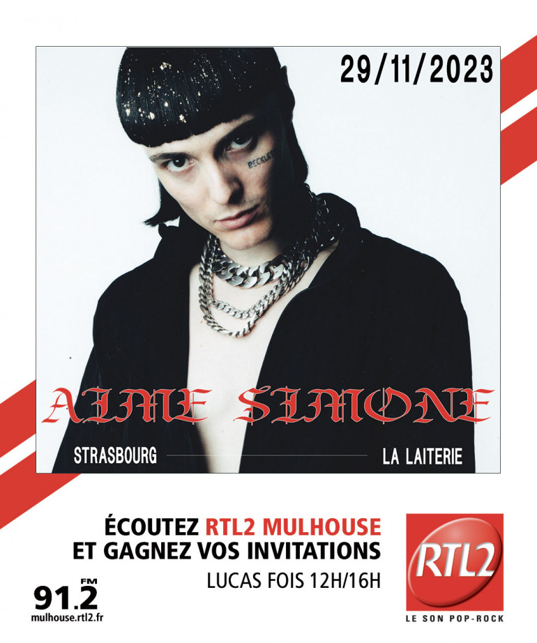Cette semaine, écoutez Lucas Fois entre 12h et 16h sur RTL2 Mulhouse, dès que vous repérez le signal RTL2, appelez au 03-68-32-36-61 et gagnez vos 2 places pour appeler applaudir Aime Simone à la Laiterie de Strasbourg le 29 novembre 2023.