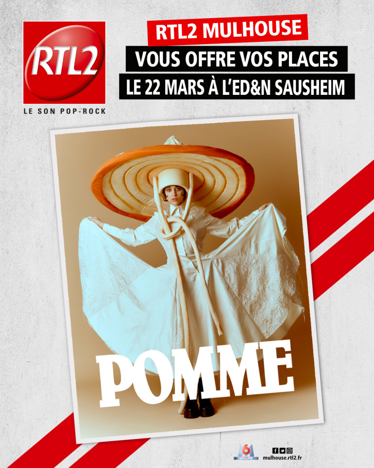 Quand vous entendez le signal RTL2, appelez au 03-68-32-36-61 et gagnez peut-être 2 places pour le concert de Pomme le 22 mars 2024 à l'Ed&n de Sausheim.
