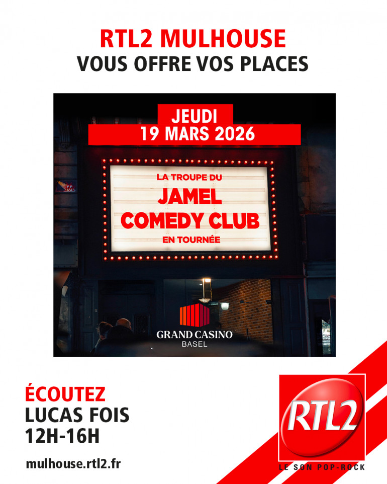 Cette semaine, écoutez Lucas Fois de 12h à 16h sur RTL2 Mulhouse, dès que vous entendez le Signal RTL2. Appelez le 03-68-32-36-61 et gagnez vos places pour aller assister au spectacle de la Troupe du Jamel Comedy Club à Bale le 19 mars !