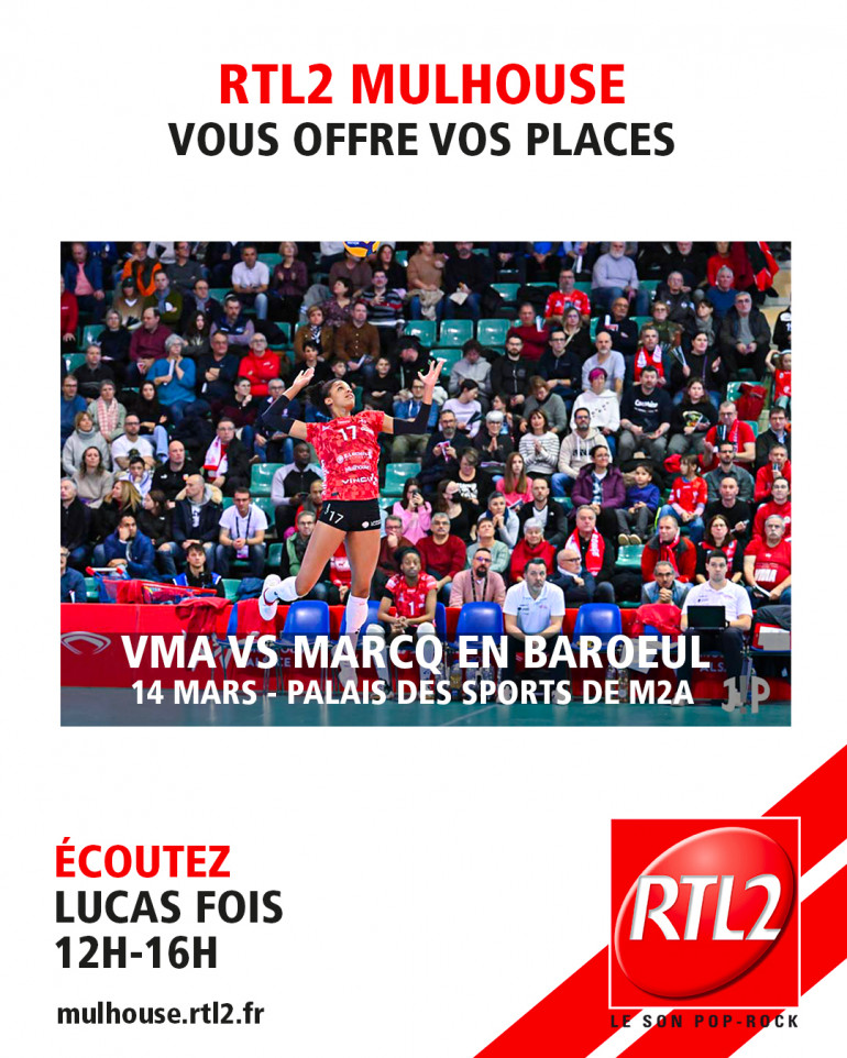RTL2 Mulhouse, partenaire du Volley Mulhouse Alsace, vous invite au match le 14 mars 2026 face à Marcq en Baroeul !