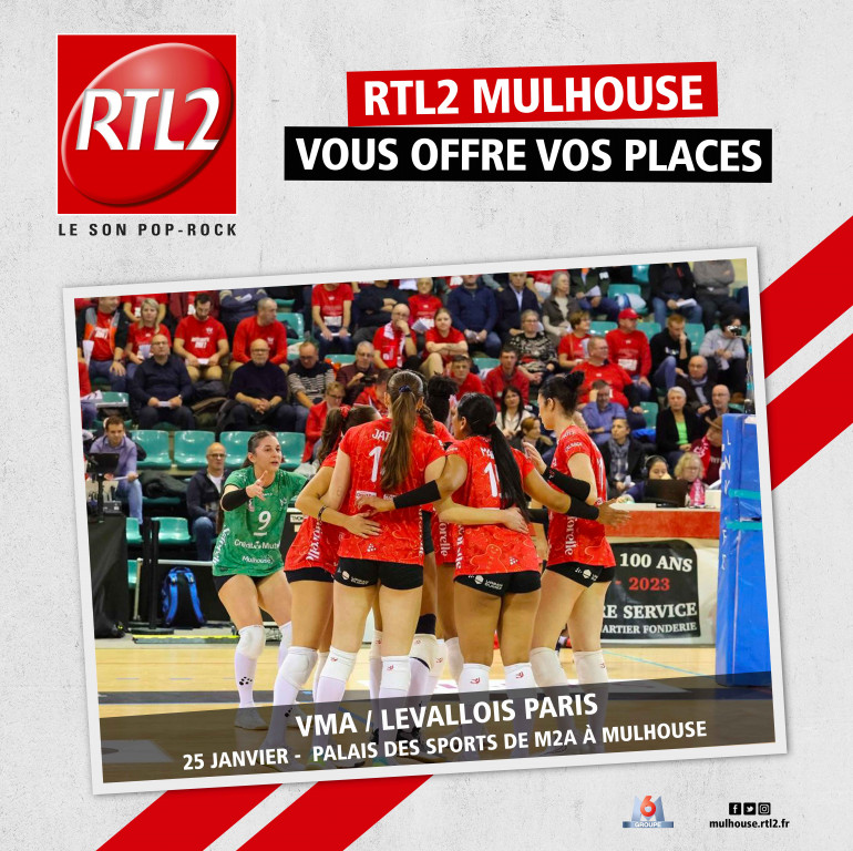 RTL2 Mulhouse, partenaire du Volley Mulhouse Alsace, vous invite au prochain match des Volleyeuses de Mulhouse le 25 janvier 2025 face à Levallois Paris, les championnes en titre !