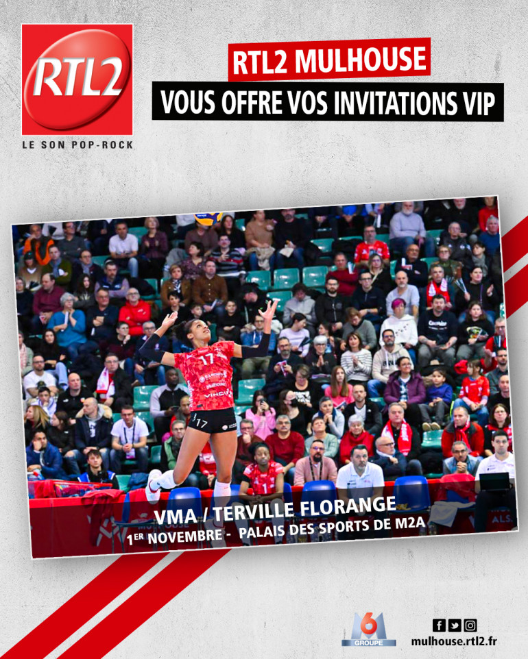 Le Volley Mulhouse Alsace est de retour ce samedi au Palais des Sports de Mulhouse. RTL2 Mulhouse, partenaire du Volley Mulhouse Alsace, vous invite au match le 1er novembre 2025 face à Terville Florange en VIP !