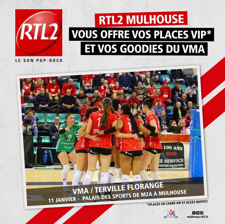 A l'occasion de la nouvelle année, RTL2 Mulhouse vous invite en VIP au prochain match des Volleyeuses de Mulhouse le 11 janvier 2025 face à Terville-Florange. Avec en plus des goodies du VMA : un maillot* et un calendrier dédicacés pour toutes les joueuses.