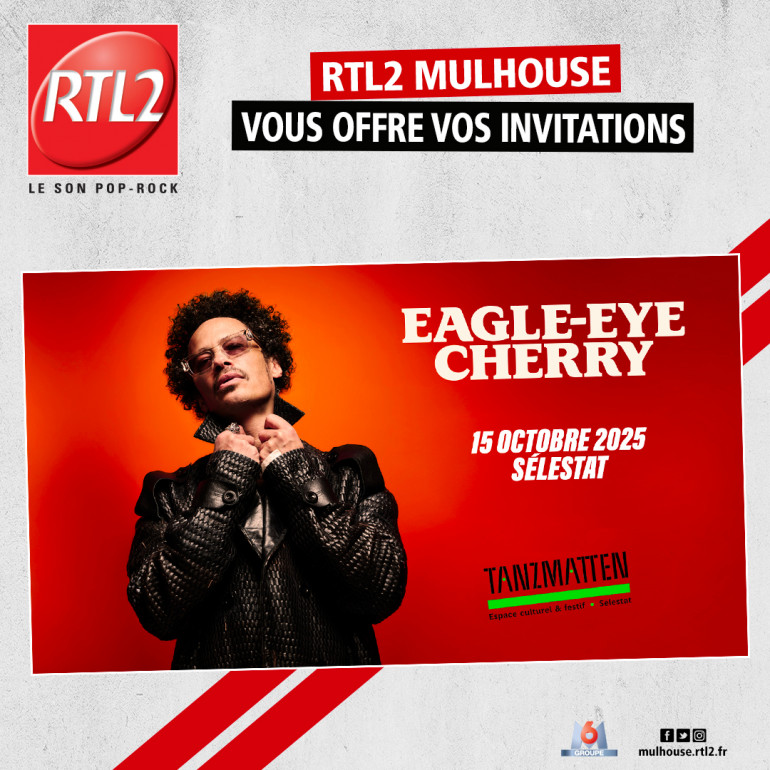 Ecoutez Lucas Fois de 12h à 16h sur RTL2 Mulhouse. Dès que vous entendez le signal RTL2, appelez au 03-68-32-36-61 et gagnez vos places pour el concert d'Eagle-Eye Cherry au Tanzmatten de Sélestat le 15 octobre 2025