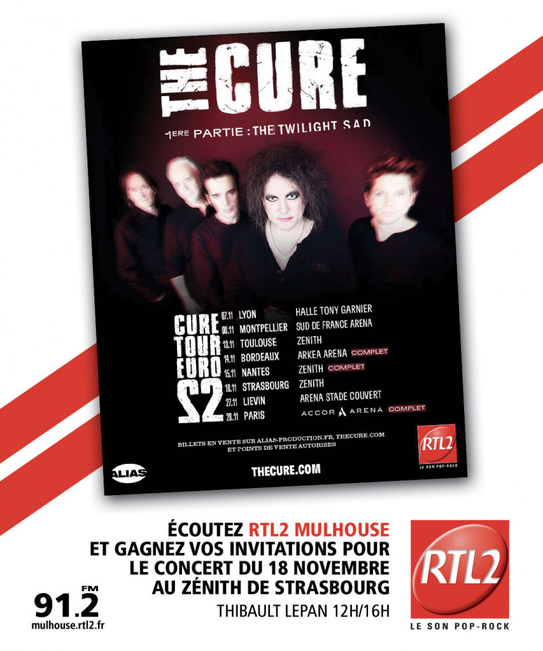 Pour gagner vos places pour le concert de The Cure, écoutez RTL2 Mulhouse entre 12h et 16h, repérez le signal RTL2 et appelez le 03 68 32 36 61 bonne chance ! =)