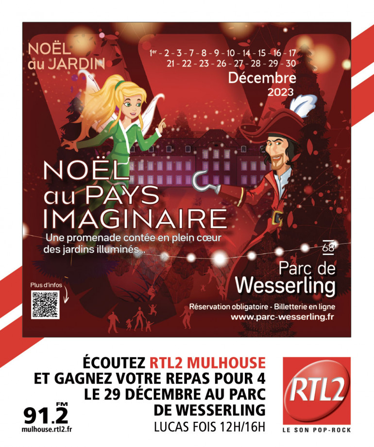Ce vendredi, écoutez Lucas Fois de 12h à 16h sur RTL2 Mulhouse, dès que vous entendez le signal RTL2, appelez au 03-68-32-36-61 et gagnez vos 4 entrées pour Noel au Jardin du Parc de Wesserling ainsi que votre repars pour 4 le 29 décembre 2023 !