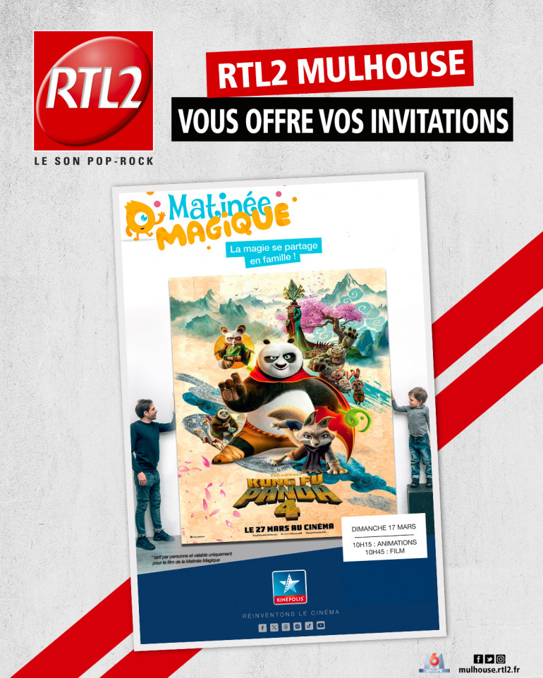 Dimanche 17 mars, profitez d'une Matinée Magique en famille : 30 minutes d'animations + le film "Kung-Fu Panda 4" à l'occasion de sa sortie en salle cette semaine !