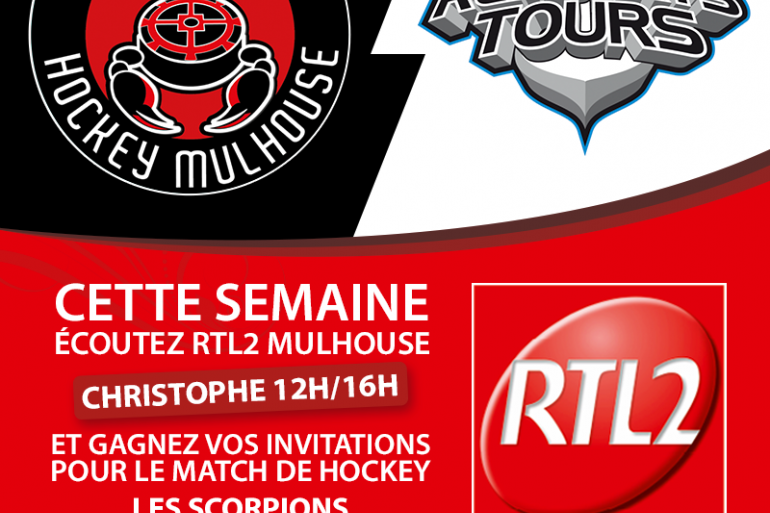 Cette semaine, écoutez RTL2 Mulhouse et remportez vos places pour la rencontre des Scorpions de Mulhouse qui recevront et affronteront l'équipe de TOURS.