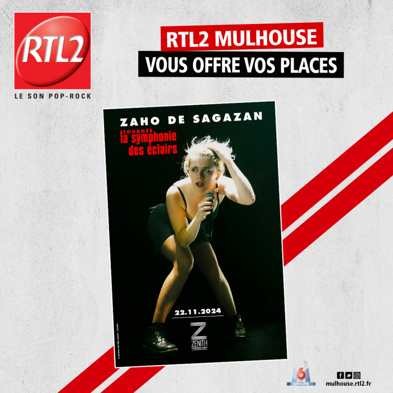Ecoutez Lucas Fois, entre 12h et 16h sur RTL2 Mulhouse. Dès que vous entendez le signal RTL2, appelez au 03-68-32-36-61 et gagnez vos deux places pour aller voir Zaho de Sagazan au Zénith de Starsbourg le 22 novembre