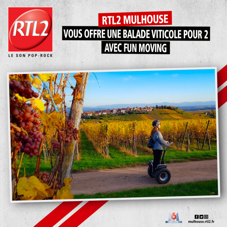 Cette semaine, écoutez Lucas Fois de 12h à 16h sur RTL2 Mulhouse. Dès que vous entendez le Signal RTL2, appelez le 03-68-32-36-61 et gagnez votre sortie en Gyropode en plein cœur des vignoble Alsaciens avec Fun Moving !