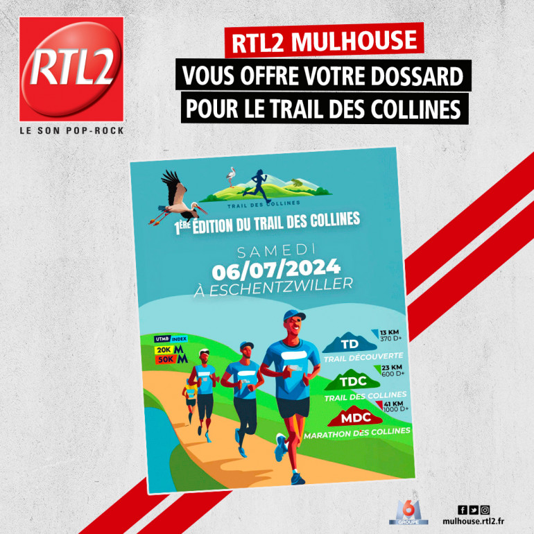 Cette semaine, écoutez Lucas Fois de 12h à 16h sur RTL2 Mulhouse. Dès que vous entendez le signal RTL2, appelez au 03-68-32-36-61 et gagnez votre dossard pour l'une des trois courses du Trail des Collines !