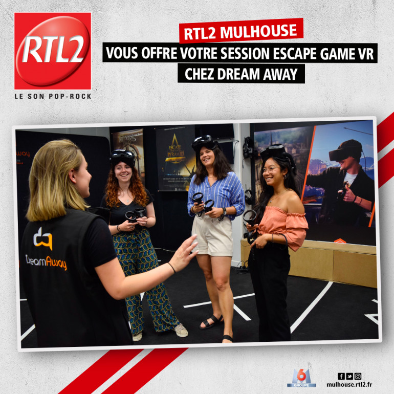 Cette semaine, écoutez Lucas Fois de 12h à 16h sur RTL2 Mulhouse, dès que vous entendez le signal RTL2, appelez au 03-68-32-36-61 et gagnez votre Escape Game en réalité virtuelle chez DreamAway, rue du Sauvage à Mulhouse.