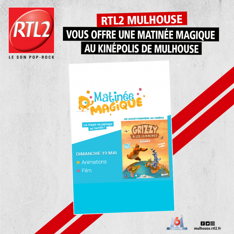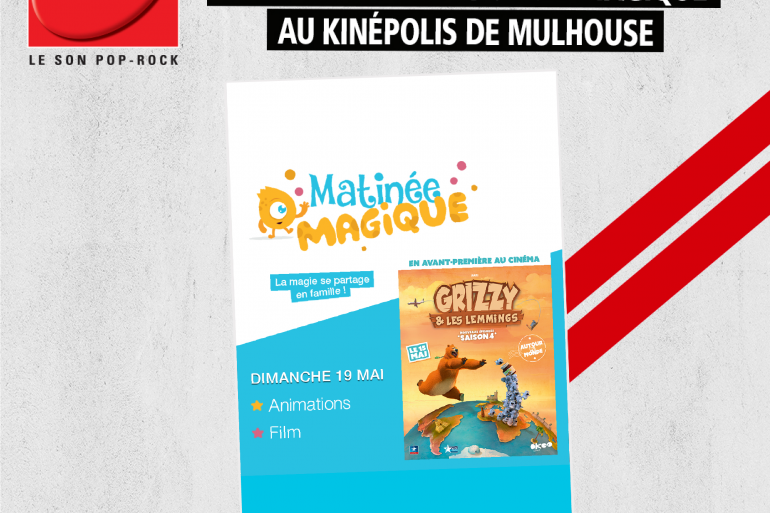 Dimanche 19 mai, profitez d'une Matinée Magique en famille spécialement pour les tout-petits, avant la projection du film d'animation "Grizzy et les Lemmings " profitez de nombreuses activités :
