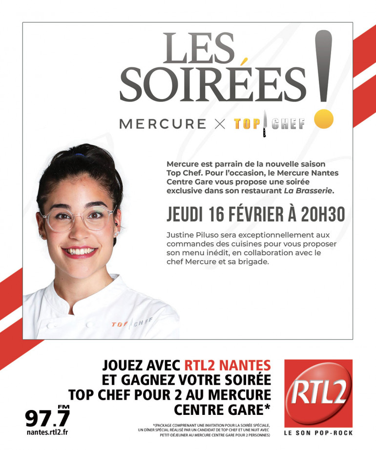 Jouez avec RTL2 Nantes et tentez de gagner votre soirée pour 2 personnes comprenant le dîner, la nuit à l'hôtel Mercure en partenariat avec Top Chef.