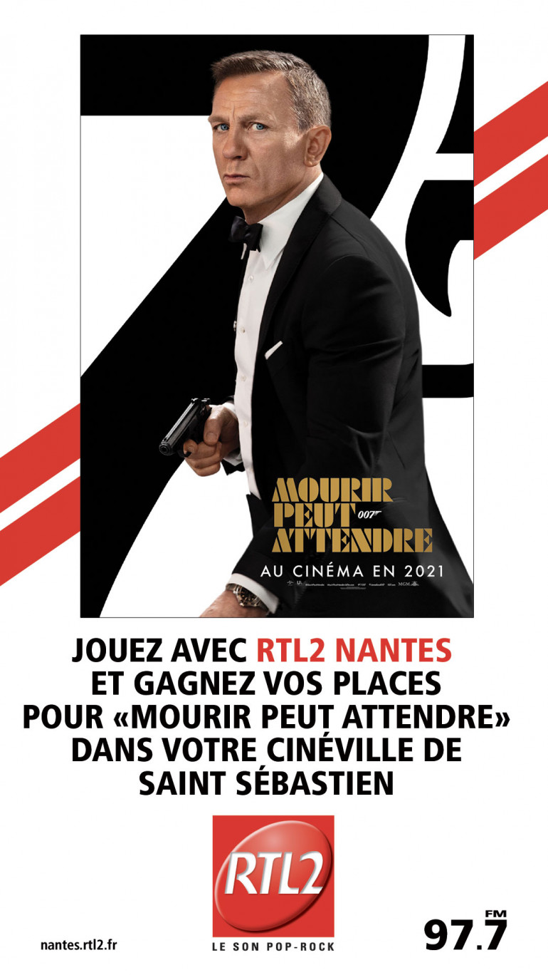 RTL2 Nantes vous offre vos invitations pour le nouveau James Bond "Mourir peut attendre" dans votre Cinéville de Saint Sébastien sur Loire.