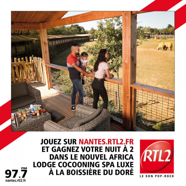 Cette semaine jouez sur nos réseaux sociaux RTL2 Nantes et tentez de gagner votre nuit à 2 dans le nouvel Africa Lodge Cocooning Spa luxe face à la savane des rhinocéros, avec diner, petit déjeuner et 2 jours au Zoo de la Boissière du Doré.