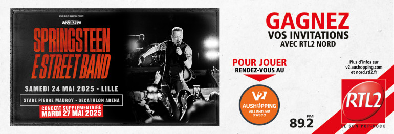 RTL2 Nord partenaire des 2 concerts du Boss, les samedi 24 et mardi 27 mai à la Décathlon Arena Stade Pierre Mauroy !