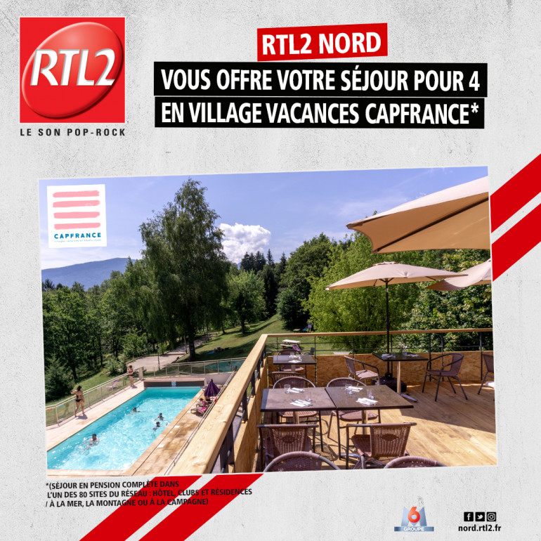 RTL2 Nord et Cap France vous offrent vos vacances ! Cette semaine, écoutez Sylvain entre 12h00 et 16h00 sur RTL2 Nord.