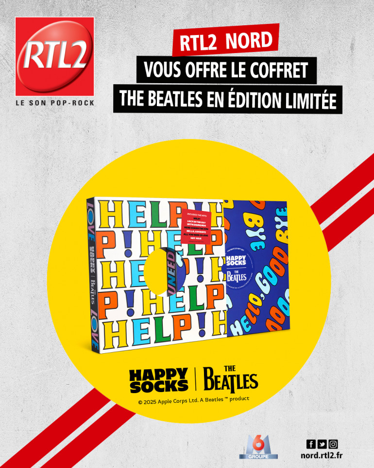 Cette semaine, jouez sur RTL2 Nord entre 12h et 16h00. Repérez le SIGNAL RTL2, et composez le 03 59 82 21 31, et tentez de remporter votre coffret en édition limitée Happy Socks x THE BEATLES !