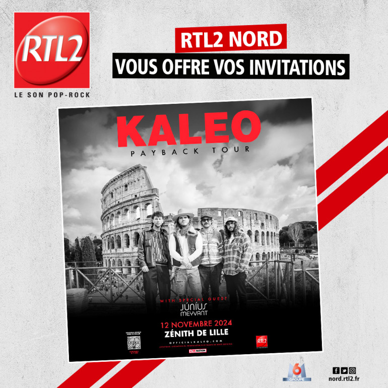 Cette semaine, écoutez RTL2 Nord entre 12h et 16h. Dès que vous entendez le signal RTL2, soyez les premiers à composer le 03 59 82 21 31 et gagnez vos deux invitations au concert de Kaleo au Zénith de Lille !