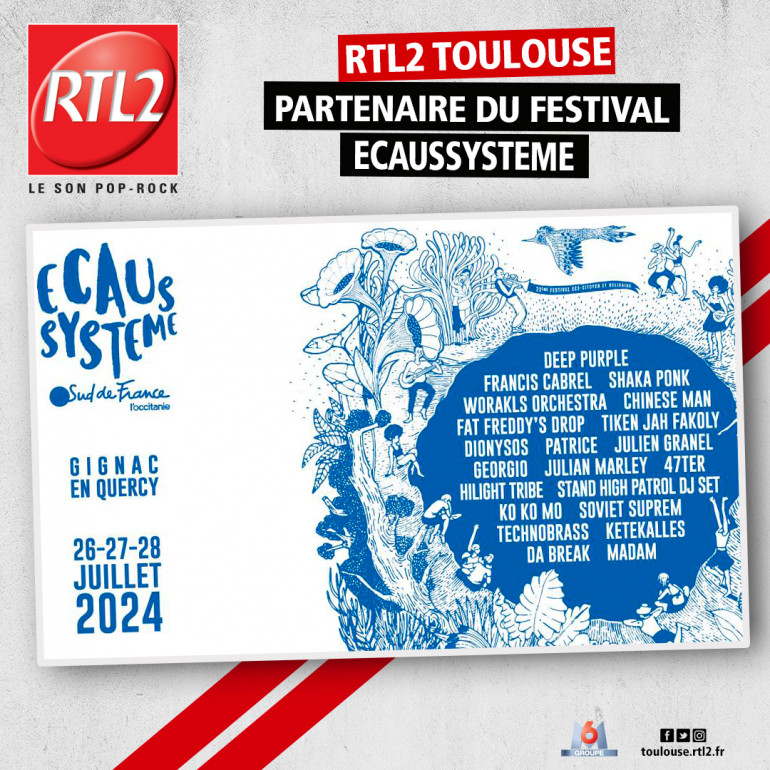 RTL2 très heureux d'être partenaire de la nouvelle édition du Festival ECAUSSYSTEME du 26 au 28 Juillet à Gignac en Quercy !