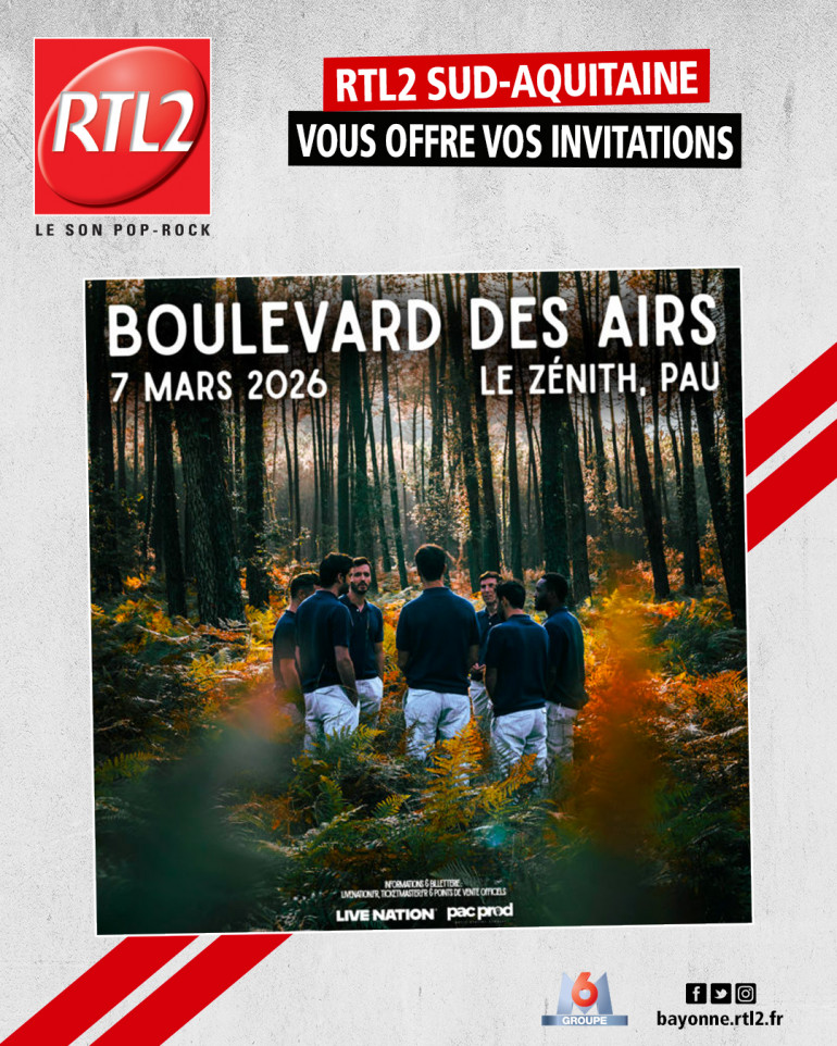 RTL2 Sud-Aquitaine vous propose de vivre un moment unique avec Boulevard des Airs, est un groupe de musique français aux sonorités éclectique mêlant pop, folk, chanson et musiques actuelles. Le 7 mars 2026, le Zénith de Pau vibrera au rythme de leurs plus grands succès et de leurs nouvelles chansons.