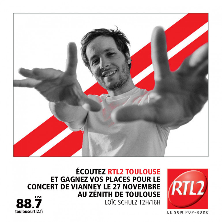 Cette semaine écoutez Loic Schulz entre 12h et 16h sur RTL2 Toulouse, dès que vous repérez le SIGNAL RTL2 appelez le 05 81 84 32 31 et GAGNEZ vos entrées pour applaudir Vianney au Zénith de Toulouse le Samedi 27 Novembre à 20h!