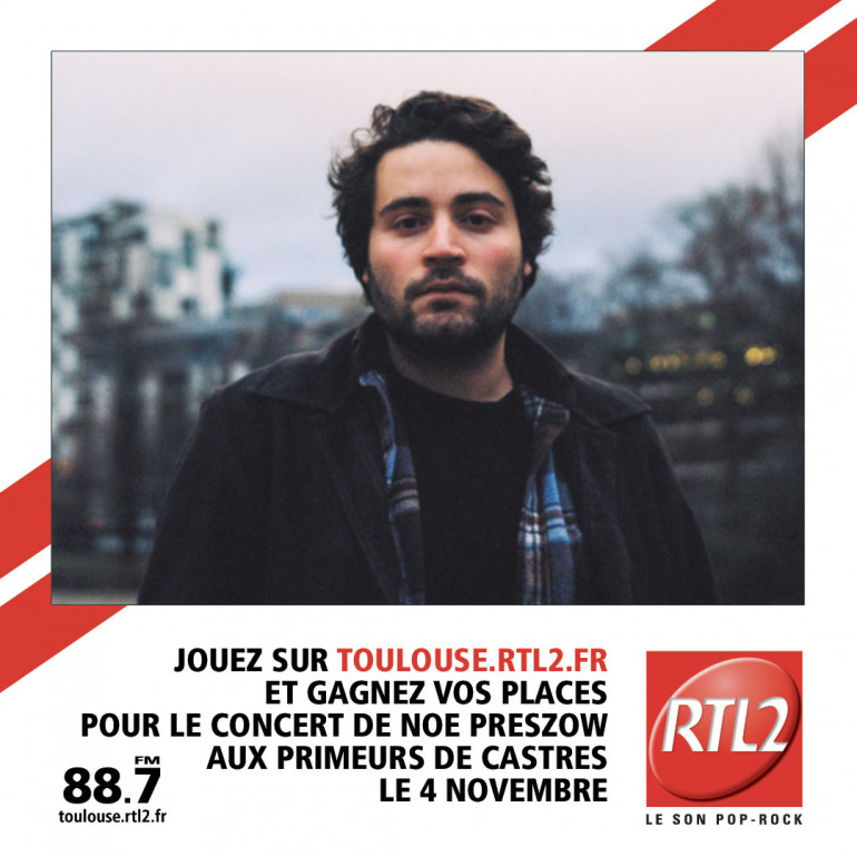 Pour tenter de remporter vos PASS pour le concert de Noé Preszow à Castres, envoyez nous un mail à toulouse@rtl2.fr avec en objet : NOE, comportant vos noms, prénoms, adresse et numéro de téléphone. Bonne chance!