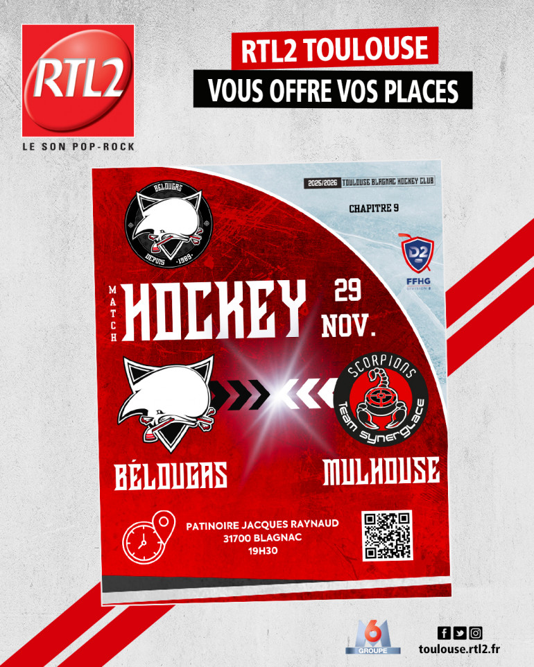 RTL2 Toulouse est fier d’être partenaire des Bélougas, l’équipe de hockey sur glace de Blagnac qui évolue en Division 2.