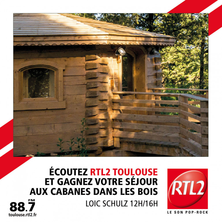 Cette semaine, écoutez Loic Schulz entre 12h et 16h sur RTL2 Toulouse, dès que vous repérez le SIGNAL RTL2 appelez le 05 81 84 32 31 et tentez de gagner votre weekend d’exception en demi pension au cœur d’une cabane 3 étoiles dans un cadre à l’ambiance chaleureuse et cosy…dépaysement, jeux de piste, calme et volupté ! Deux jours au cœur de la nature avec l’Hôtel “les Cabanes dans les Bois” et RTL2 Toulouse.
