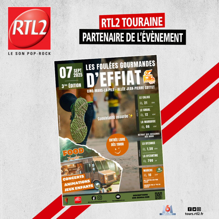 RTL2 Touraine, partenaire des Foulées Gourmandes d'Effiat à Cinq-Mars-la-Pile, le 7 septembre 2025