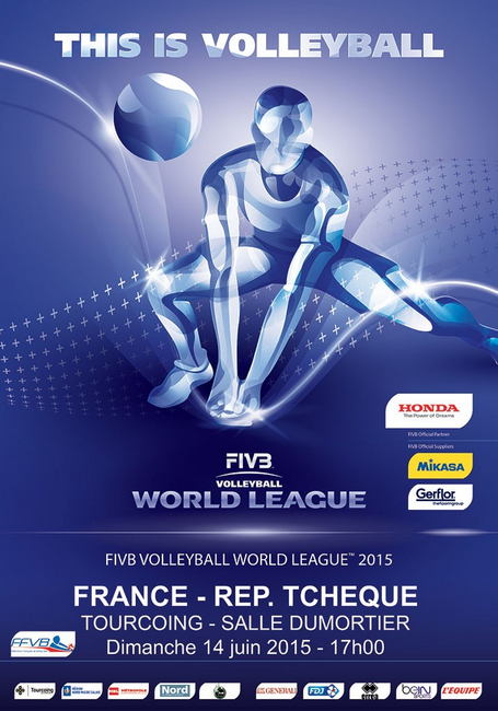 Le dimanche 14 Juin à 17H, venez soutenir l’Equipe de France de Volley-Ball qui affronte la République Tchèque dans le cadre de la ligue Mondiale, salle Léo Lagrange à Tourcoing!