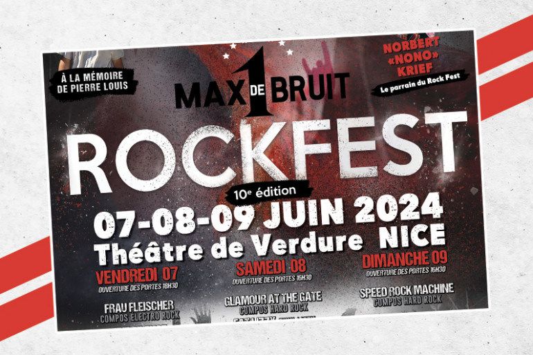 RTL2 Côte d’Azur vous invite au « Rock Fest 1 Max De Bruit 2024 » les 7, 8 et 9 juin au théâtre de Verdure de Nice.