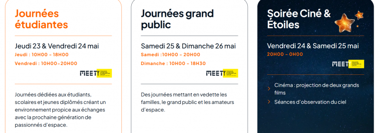 Du 23 au 26 Mai découvrez l'univers du spatial comme vous ne l'avez jamais vu au Meett le parc expo, centre de conventions et congrès de Toulouse !