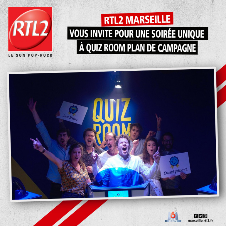 Pour participer à ce QUIZ tentez votre chance en laissant vos coordonnées sur marseille@rtl2.fr (Nom, Prénom, téléphone, ville) + "QUIZ ROOM", bonne chance