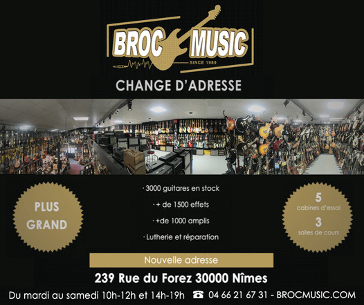 Depuis 1989, BROC Music c'est LE spécialiste guitare à Nîmes : 3 000 références, plus de 1 200 pédales à effets et 1 000 amplis.