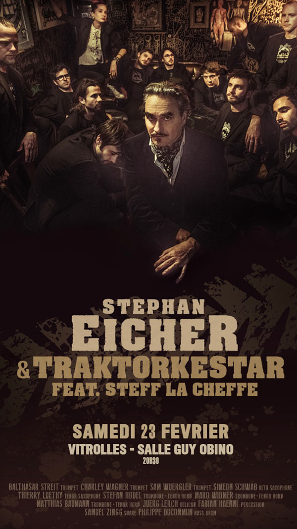 Stephan Eicher, Traktorkestar et l'incontournable Steff la Cheffe seront à Vitrolles à la salle Obino le 25 janvier 2019 pour un concert qui s'annonce déjà comme un moment unique, magique à partager sans compter.