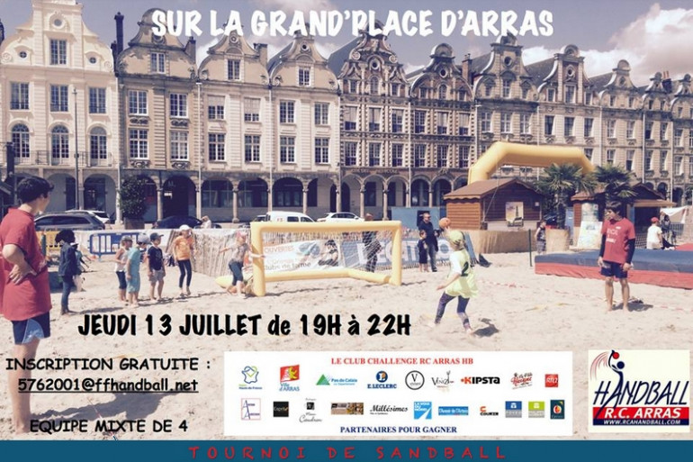 Dans le cadre d'Arras on the beach, le RC Arras organise un tournoi de Sandball en nocturne le jeudi 13 Juillet de 19h à 22h.