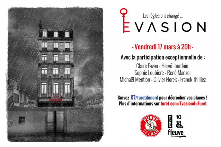 Entre 200 et 250 joueurs, sélectionnés grâce à des énigmes publiées sur les réseaux sociaux et sur des blogs lillois, auront pour mission de libérer 7 auteurs de romans policiers qui participeront, eux aussi, à la soirée. Autrement dit, les équipes devront trouver la combinaison qui permettra d'ouvrir la porte du Furet afin de libérer le Nordiste Franck Thilliez, Hervé Jourdain, Sophie Louvière, Olivier Norek, René Manzor, Claire Favan et Michaël Mention.