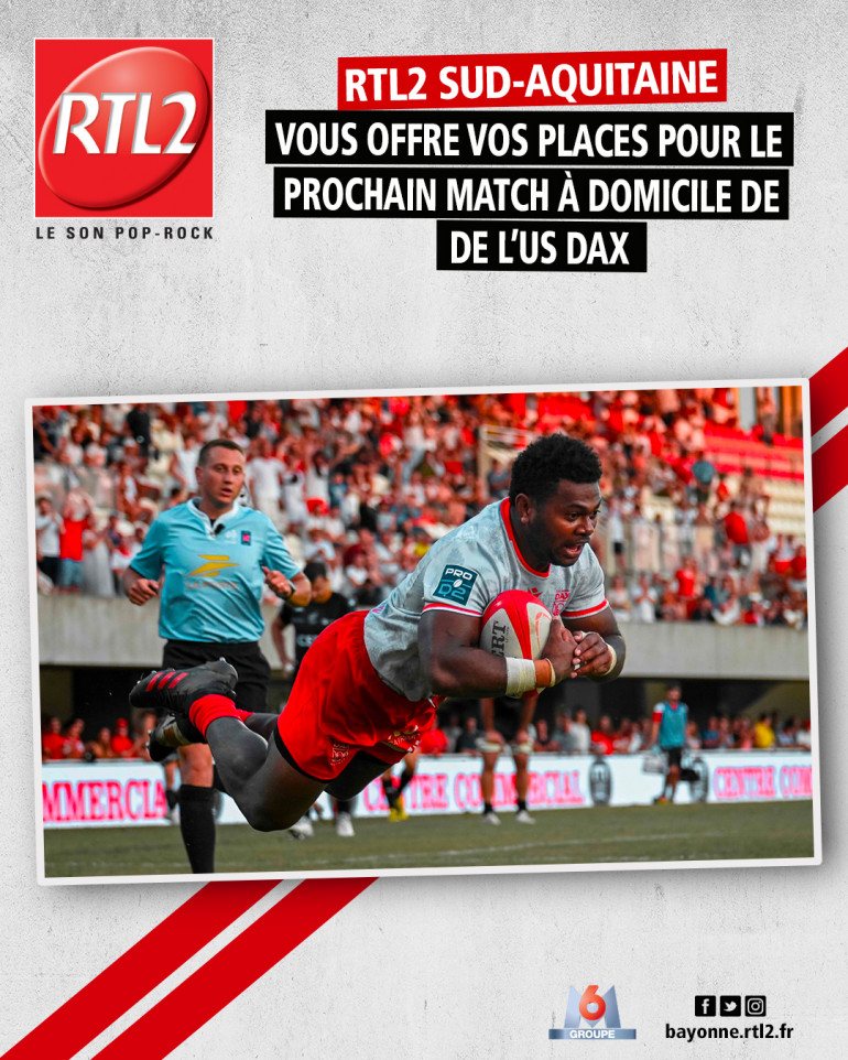 RTL2 Bayonne vous offre vos places pour ce match ! Pour tenter votre chance, envoyez "US DAX" avec nom, prénom et numéro de téléphone à : bayonne@rtl2.fr