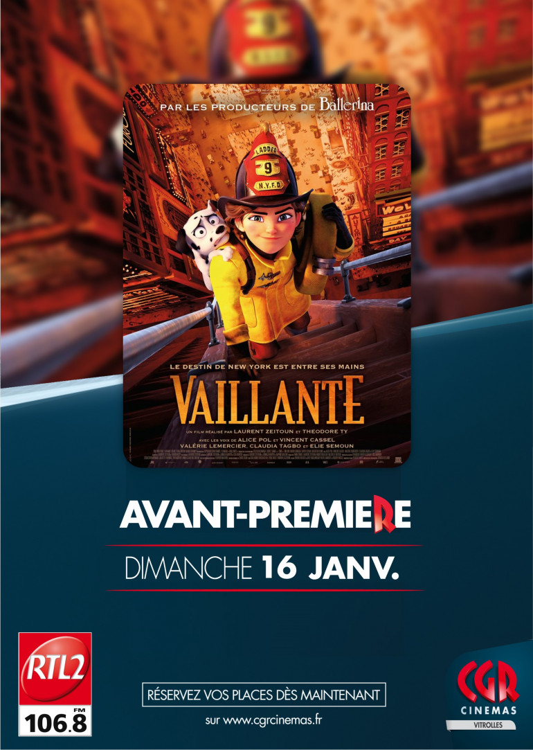RTL2 Marseille vous invite à l'avant-première du film VAILLANTE, ce dimanche 16 janvier à 11h dans votre cinéma CGR Vitrolles !