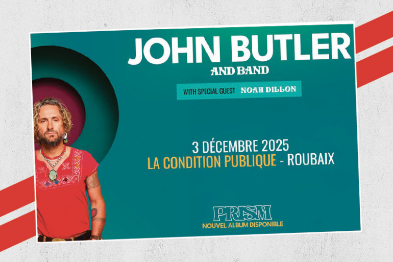Jouez ici, indiquez vos coordonnées complètes (nom, prénom, adresse, numéro de téléphone), et tentez de gagner vos 2 invitations au concert de John Butler & Band, mercredi 03 décembre à La Condition Publique de Roubaix !