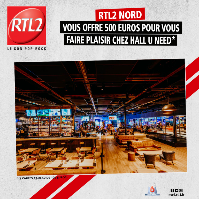 Cette semaine, écoutez RTL2 Nord entre 12h et 16h. Dès que vous entendez le Signal RL2, soyez les premiers à composer le 03 59 82 21 31, et tentez chaque jour de remporter votre carte cadeau créditée de 100€, à utiliser chez Hall U Need !