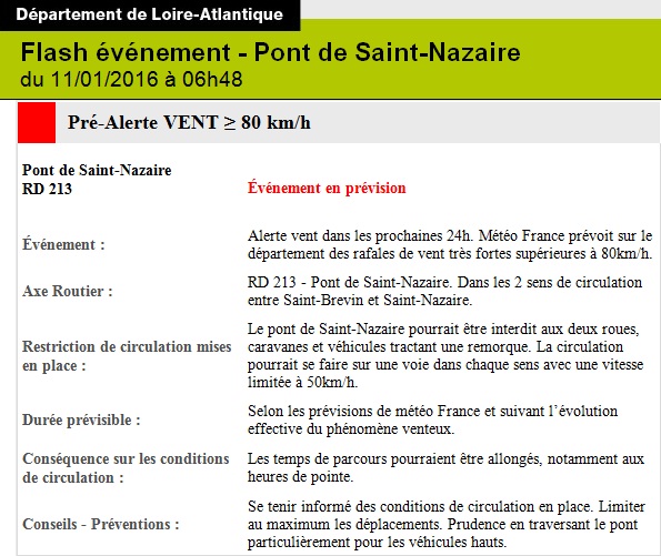 Pour la Loire-Atlantique, les rafales pourraient atteindre les 110 km/h sur la côte et près de 90 km/h dans les terres à la mi-journée avec de forts coefficients de marée: 93 ce matin, 95 cet après-midi.