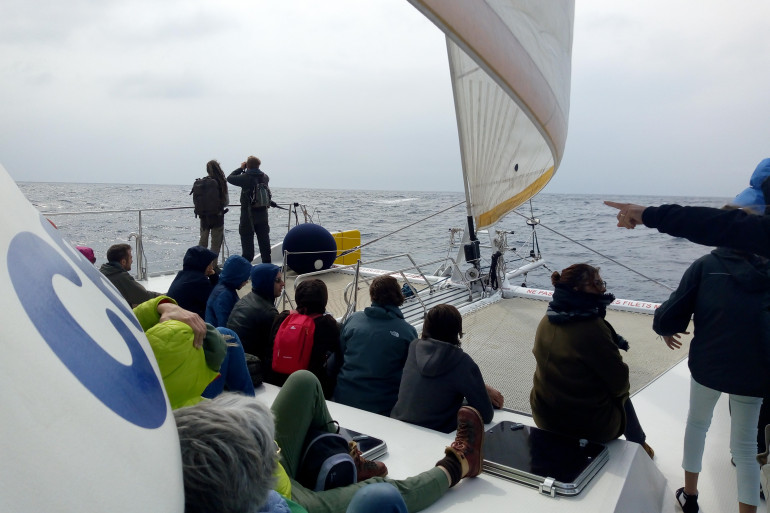 large, le bateau s’arrête: cétacés en vue ! Pas question de les embêter: