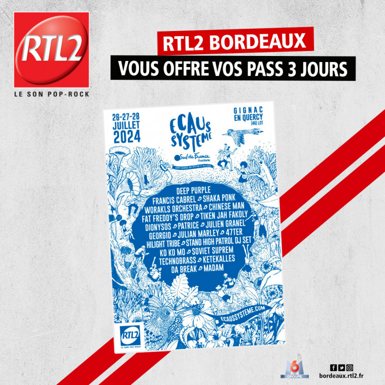 Toute cette semaine, RTL2 Bordeaux vous offre vos pass 3 jours pour le festival Ecaussysteme, du26 au 28 juillet !