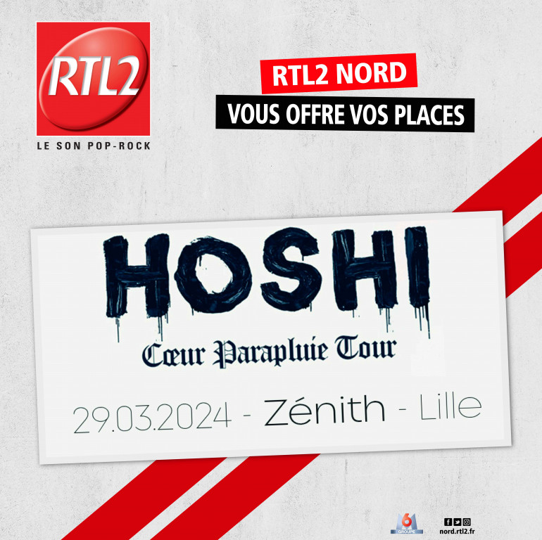 Cette semaine écoutez Sylvain entre 12h et 16h sur RTL2 Nord. Dès que vous repérez le SIGNAL RTL2 appelez le 03 59 82 21 31 et gagnez vos entrées pour applaudir Hoshi le 29 mars 2024 au Zénith de Lille !